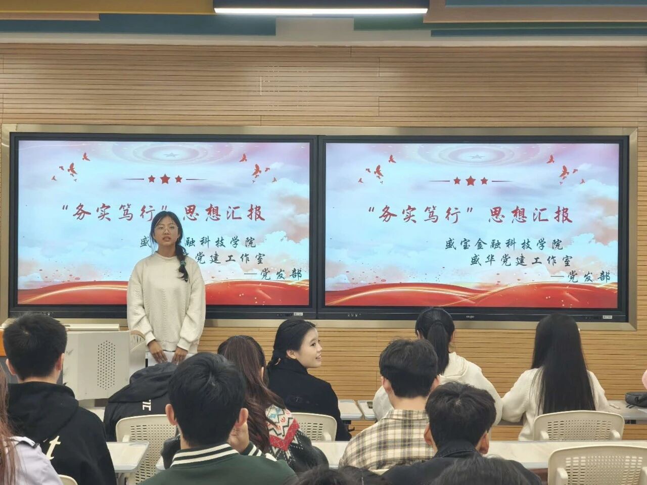 为深入贯彻习近平总书记的重要思想,以务实之风推动思想建设,切实了解入党积极分子的思想情况,盛华党建工作室党发于2024年10月24日19:00在M253教室开展了以“务实笃行”为主题的入党积极分子思想汇报活动。推动入党积极分子在学思践悟中深入领会习近平新时代中国特色社会主义思想,做到理论上学懂弄通、思想上至信执着、行动上务实笃行。