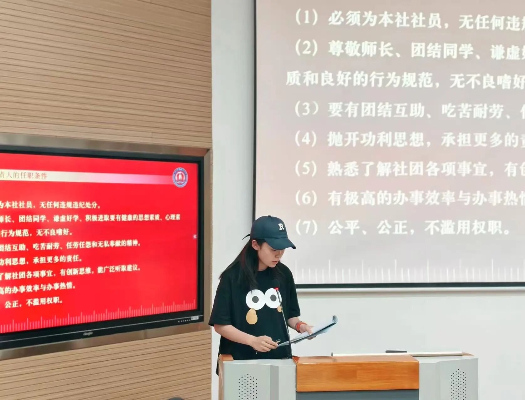 社长张曦木对社团成立表示祝贺。其强调,社团成员需严格遵守社团章程,秉持奉献精神,未来将通过组织红色主题活动、开展讲座研讨等方式,积极传播思政正能量,全力打造具有影响力的优质社团。