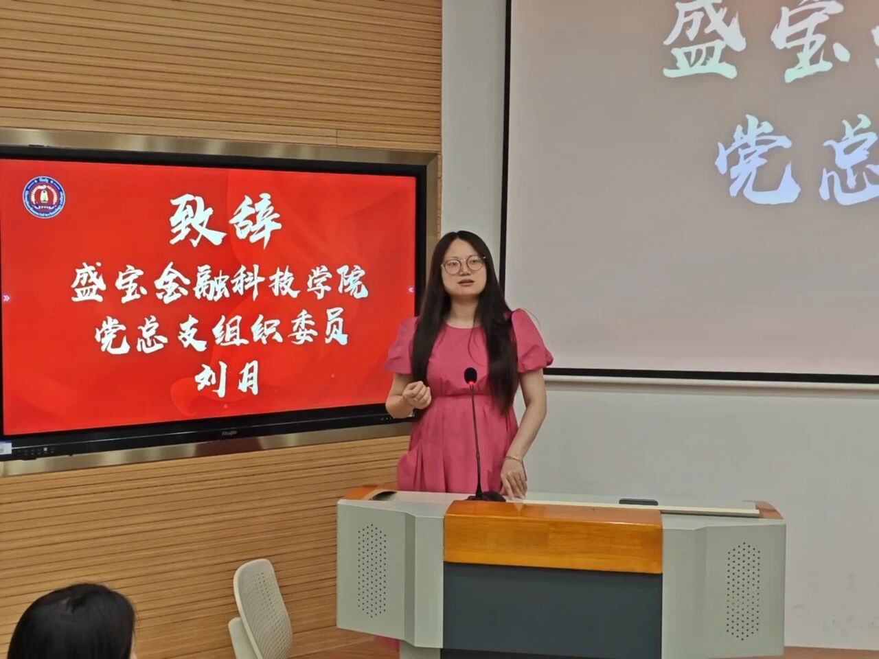 会上,盛宝金融科技学院党总支组织委员刘月老师致辞。刘月老师表示党总支将全力支持青年明灯思政社团的发展,提供资源保障与指导,期待社团能发挥引领作用,助力同学们成长为有理想、敢担当、能吃苦、肯奋斗的新时代青年,为校园文化建设与思政教育创新贡献力量。