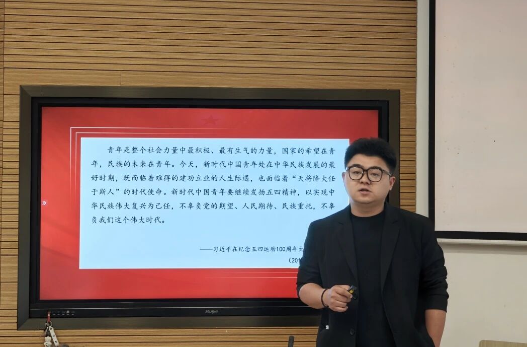 本次课程由“做担当时代大任的青年、培养优秀干部”,“建设卓越团队、青春志愿行”,“奉献新时代”三个部分组成,盛宝金融科技学院团总支书记张国磊老师授课。