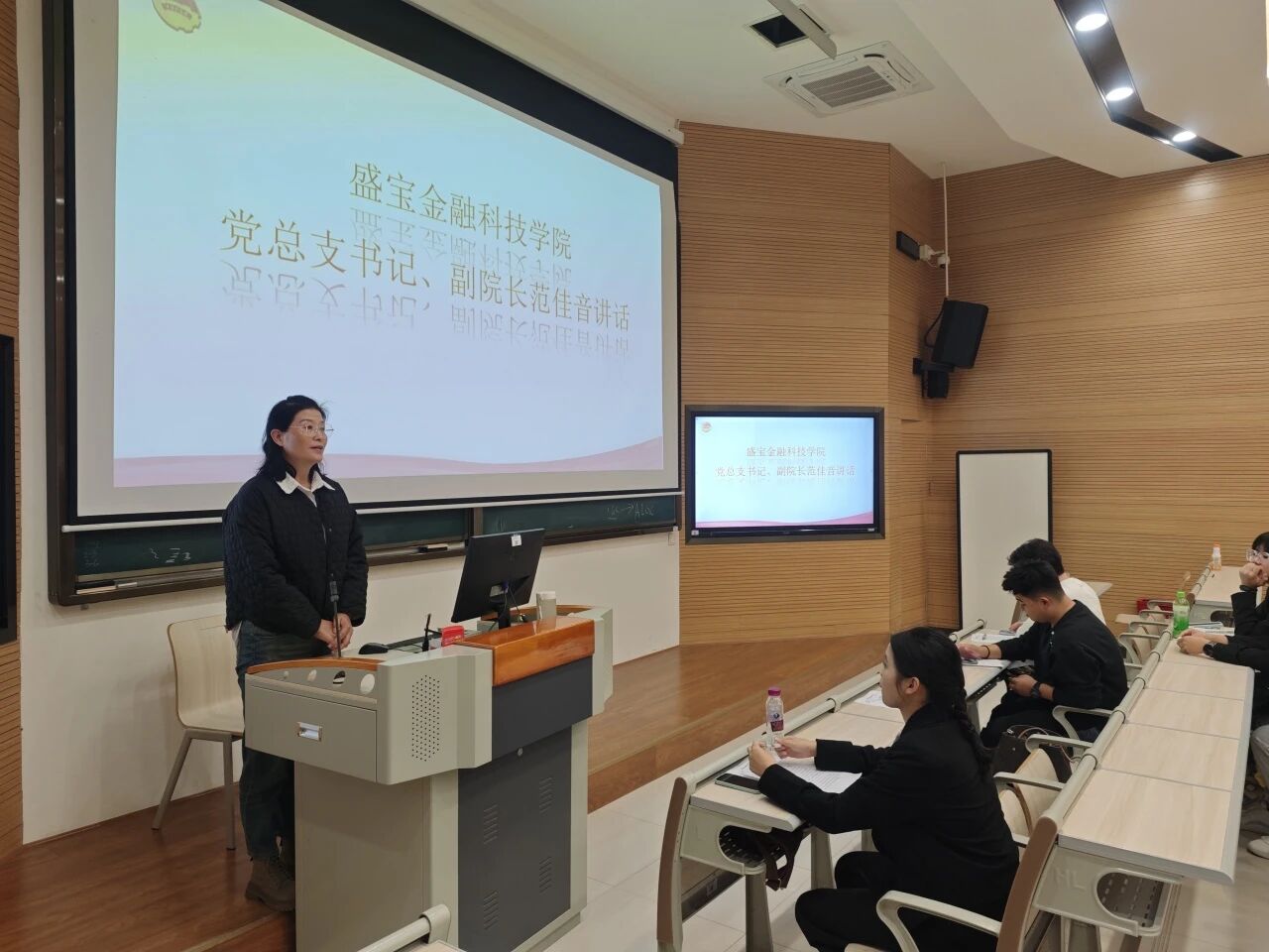最后,盛宝金融科技学院党总支书记、副院长范佳音上台,对本次主题团课大赛进行了全面而深刻的总结。她高度赞扬了此次大赛的的组织开展,同时,范书记也对此次大赛的参赛队伍表示了极大的肯定和赞赏。