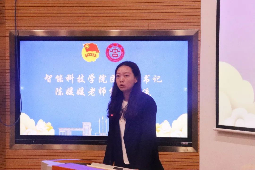 陈媛媛老师大致讲述了团学的精神、理念,以及大家在团总支工作的想法等,并分享了在智能科技学院团学大家庭中发生的有趣故事,注入了一些欢乐的气氛。最后她表示很高兴两院能够坐在一堂共同分享经验、促进情谊,希望这次的两院团总支学生会经验交流茶话会能够完美举行。