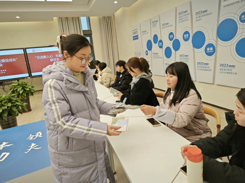 在交流互动中,刘月老师就同学们提出的问题做了详细回复。随后,由范佳音副院长、刘月老师和刘莉老师为同学们分发学院准备的的小礼物,以资鼓励。同学们对此次座谈会感到收获满满,相信他们会在人生道路上绘制更加美好的画卷。