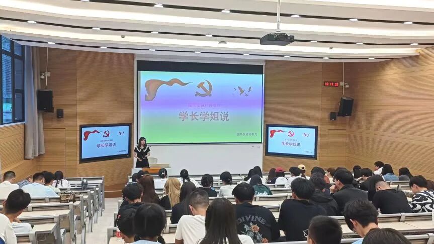 会上,彭可馨同学通过加入学生组织、参与志愿活动、参加学科竞赛及学术研究三个方面分享自己在大学生活中的学习经验以及工作经历,希望21级、22级的学弟学妹们能够有所收获。